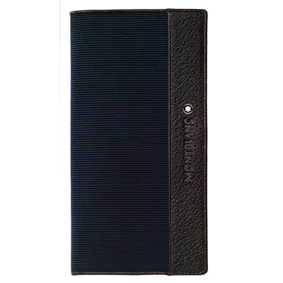 Portafoglio Montblanc Nightflight Cruise verticale in seta blu e pelle di vitello pieno fiore marrone leggermente lavorata ed emblema iconico Montblanc. L'interno è realizzato in pelle marrone e fodera interna in jacquard. Un portafoglio elegante, realizzato con materiali di elevata qualità, resistenti all'usura, alle macchie e ai graffi. Organizzazione Interna: 1 scomparto per banconote 6 tasche per carte di credito 2 scomparti supplementari