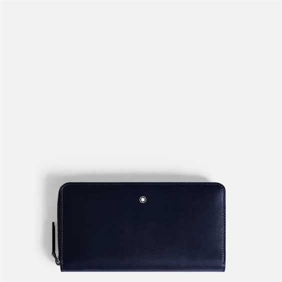 Realizzato in morbida pelle blu notte e color ruggine, questo portafoglio è un versatile alleato per tutto il giorno. La cerniera completa della raffinata silhouette rettangolare si apre su tre scomparti per banconote, un portamonete con cerniera, tre tasche piccole e aperture per fino a 12 carte di credito. Ident No. MB198750