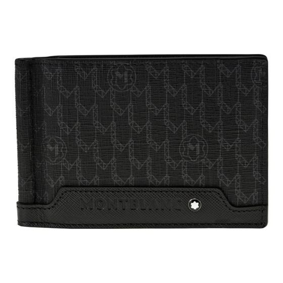 MONTBLANC / SIGNATURE BLACK / PORTAFOGLIO CON FERMASOLDI / TESSUTO NERO E PELLE NERA Portafoglio orizzontale con fermasoldi e 6 tasche per carte di credito