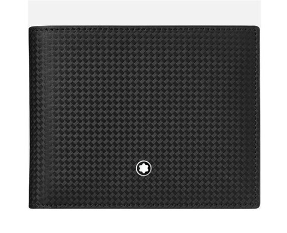 Con il suo audace colore nero, il mix di pelle liscia all'interno e con stampa effetto fibra di carbonio all'esterno, il portafoglio è il compagno ideale dei giovani esploratori urbani per custodire le loro carte di credito e i contanti. Ha 6 aperture per carte di credito, 2 scomparti per banconote e 2 tasche extra. La tecnologia Montblanc Shield (fodera che blocca le RFID) completa il look.