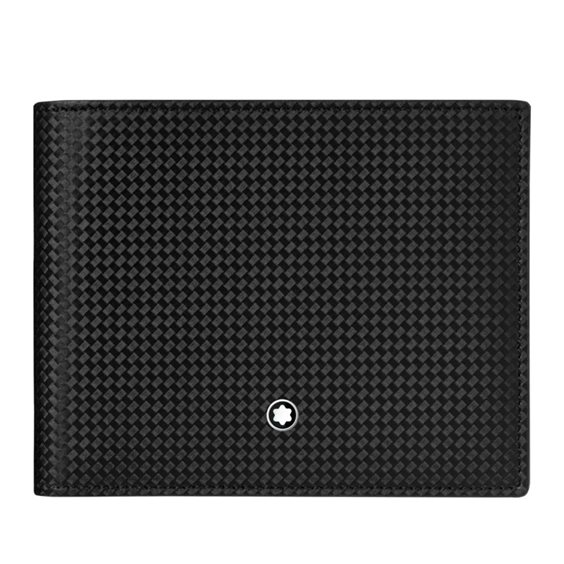 Portafoglio 8 scomparti Extreme 2.0 Con il suo audace colore nero, il mix di pelle liscia all'interno e con stampa effetto fibra di carbonio all'esterno, il portafoglio è il compagno ideale dei giovani esploratori urbani per custodire le loro carte di credito e i contanti. Ha 8 aperture per carte di credito, 2 scomparti per banconote e 4 tasche extra. La tecnologia Montblanc Shield (fodera che blocca le RFID) completa il look.