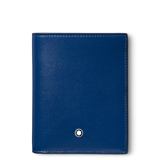 Il portafoglio compatto Meisterstück con sei aperture per carte di credito è realizzato in una nuova tipologia di pelle blu estremamente lucida. Il nuovo design interno geometrico e lineare ne sottolinea l’essenza funzionale, con più aperture per carte di credito e tasche per contanti e ricevute. Questo portafogli può essere portato comodamente con un laccetto da collo (venduto separatamente) o riposto in tasca.