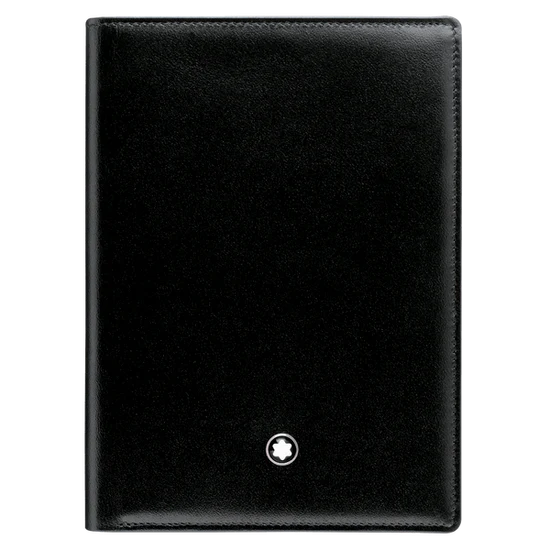 Il portafoglio Meisterstück è realizzato in pelle nera con elevata lucentezza Montblanc. Può contenere fino a sette carte di credito negli slot dedicati e banconote e documenti personali nella custodia portadocumenti removibile.