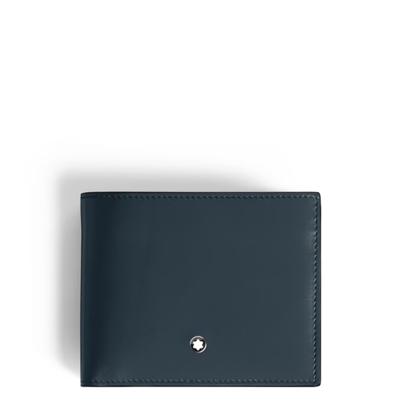 Sottile ed elegante, il nostro classico portafoglio bifold è un compagno raffinato per tutti i giorni. Pensato per contenere tutto l’essenziale, offre sei aperture per carte di credito, due scomparti per banconote e due tasche aggiuntive per ricevute. Realizzato in elegante pelle di vitello Meisterstück blu velluto, è impreziosito dal discreto emblema Montblanc sul davanti.