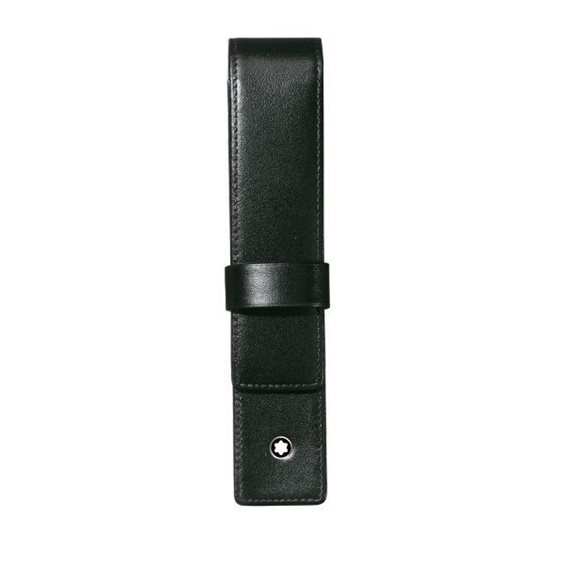 Portapenne Montblanc Nero in pelle. L'astuccio per uno strumento da scrittura Montblanc è il modo più elegante per trasportare lo strumento da scrittura più pregiato. Realizzato in pelle di vitello pieno fiore, con fodera jacquard nera, il suo scomparto sottile è adatto a una penna a sfera o a una stilografica delle dimensioni di Meisterstück Classique o LeGrand. Grazie alle dimensioni pratiche di 3 x 16 cm, il porta penna in pelle nera entra facilmente nelle tasche dei pantaloni o della giacca.