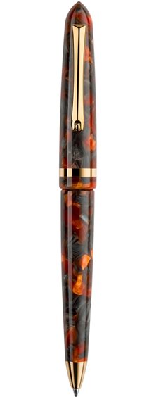Venetia, Eroe locale, a sfera. Un nuovo nome non fu l’unico dettaglio a contraddistinguere gli strumenti da scrittura veneti realizzati alla fine degli anni ’20. Durante questo periodo di grande rinascita industriale e artigianale, molte delle più raffinate esportazioni della regione si contraddistinsero per l’audacia del loro design. Le discrete decorazioni di questa ristampa d’archivio rivelano tracce dell’orgoglio e del saper fare locali. L’abile lavorazione e l’uso minimale dell’ottone dorato arricchiscono le forme dello strumento senza comprometterne la funzionalità. Materiali:Resina; Minuterie:Ottone, Placcato Oro Giallo; Packaging:Standard; Accessori Inclusi:Refill; Lunghezza:146 mm; Diametro:14,0 mm; Peso:28,00 gr.