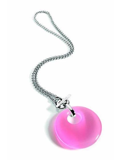 Collana in acciaio di Morellato collezione Bali. Catena in acciaio lunghezza cm. 45, N. 3 ciondoli in vetro colorato intercambiabili di colore diverso (bianco, blu, rosa)