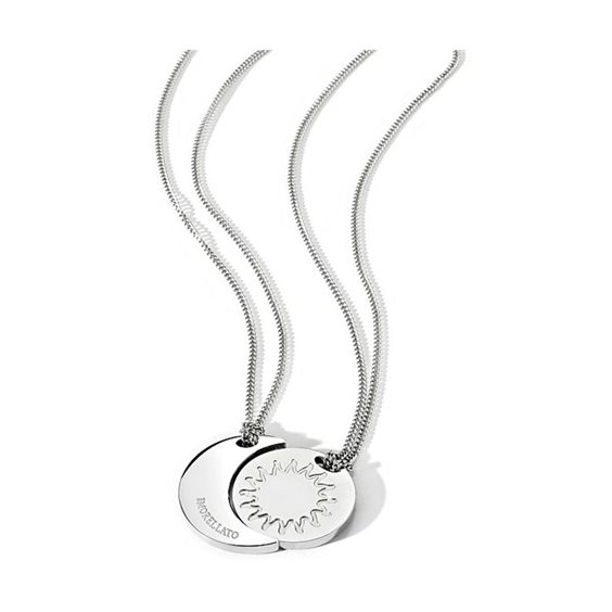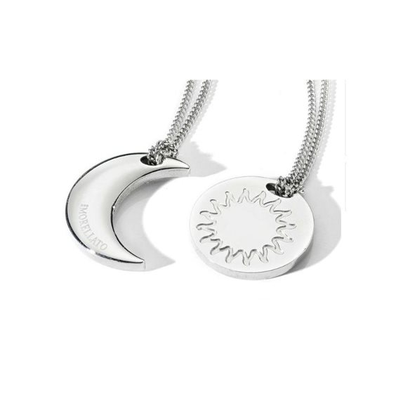 Collana unisex in acciaio 316L composta da Ciondolo in acciaio SOLE e LUNA divisibile in due parti. Completo di due catenine lunghe una 45 e una 50 cm. ideale per coppia.