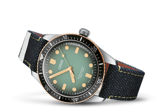 ORIS X MOMOTARO Questa speciale versione in acciaio e bronzo dell'Oris Divers Sixty-Five è realizzata in collaborazione con l'azienda indipendente giapponese Momotaro Jeans. L'Oris x Momotaro nasce da una cultura artigianale condivisa. I jeans Momotaro sono intrecciati su telai vintage e cuciti a mano. L'orologio viene fornito in una custodia da viaggio in denim.