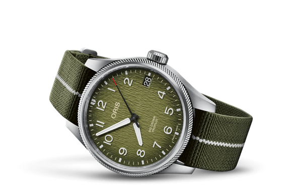 Ispirato alla vegetazione del Delta dell'Okavango Il nuovo orologio è basato sull'Oris Big Crown ProPilot. Il suo quadrante verde è ispirato alla vegetazione del Delta dell'Okavango e viene consegnato con un esclusivo cinturino in tessuto verde creato da Erika's Originals (viene fornito anche con un cinturino aggiuntivo in pelle marrone e una custodia da viaggio). Confezione con doppio cinturino CASSA ProPilot, 41.00 mm, Acciaio MOVIMENTO Carica automatica Grande Data sviluppato da Oris QUADRANTE Verde CINTURINO/BRACCIALE Tessuto EXTRA Cofanetto speciale, certificato, cinturino supplementare in pelle, edizione limitata a 2011 esemplari GARANZIA 2 anni