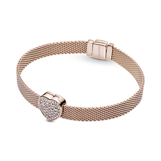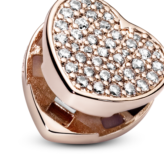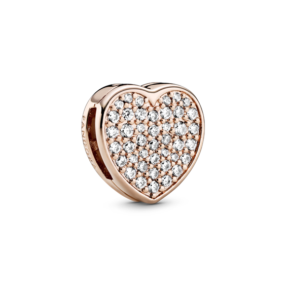 Charm Reflexions con cuore a pavé in lega metallica placcata oro rosa 14kt, compatibile con i bracciali della linea Pandora Reflexion