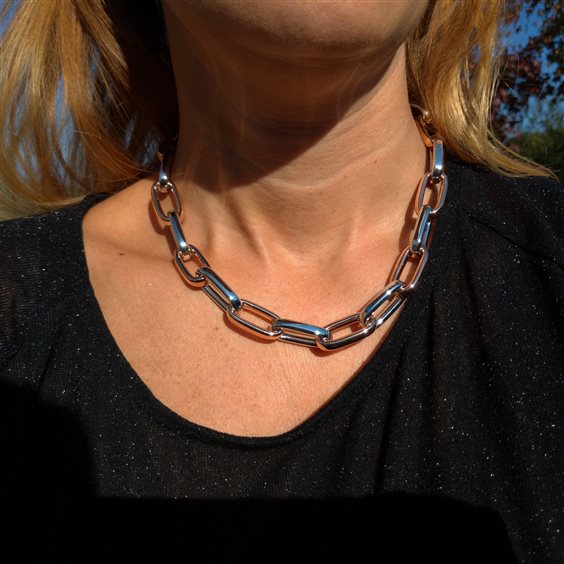 Collana in argento 925 da donna, collana a catena bicolore, argento/tre micron di oro rosa. Collezione Forever Chic.