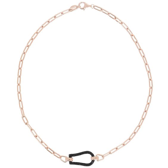 Collana girocollo della collezione Pesavento Polvere Di Sogni da donna. Colore: oro rosa e nero. Il gioiello è in argento 925‰ rosé caratterizzato da maglie ovali e una sezione centrale impreziosita da micro-particelle ottenute, con la nanotecnologia, dalla lavorazione di materiali naturali minerali, a seconda delle caratteristiche e dei colori che si desiderano ottenere, e hanno una forma esagonale per esaltare l'effetto ottico della riflessione. Lunghezza totale 39 cm con chiusura a moschettone. Un bellissimo sogno, luccicante e avvolgente, uno di quelli da cui non ci si vuole più risvegliare. Pesavento ha reso tutto questo reale creando dei gioielli unici ed eleganti, che aspettano solo di essere indossati e di mettere in risalto la tua femminilità. Con Pesavento i sogni diventano realtà!