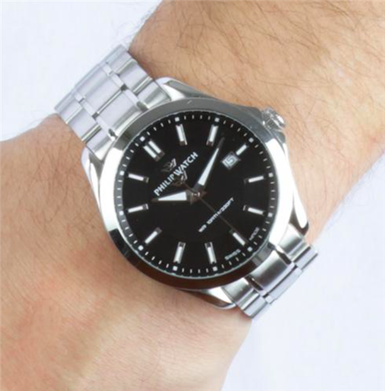 Orologio uomo in acciaio 316L. Movimento svizzero al quarzo RONDA 515. Diametro cassa mm 41. Vetro minerale. Quadrante nero, indici e lancette color acciaio e bianco, datario. Fondello a vite. Cinturino in acciaio lucido e satinato con chiusura fibbia a farfalla. Immagine indicativa , la confezione può variare in forma e colore.