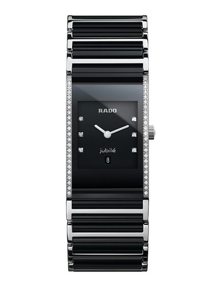 Bracciale misto acciaio e ceramica nera vetro zaffiro quadrante con 6 diamanti incastonati agli indici tot 0.025 ct 46 diamanti incastonati fasce laterali cassa tot ct 0,165