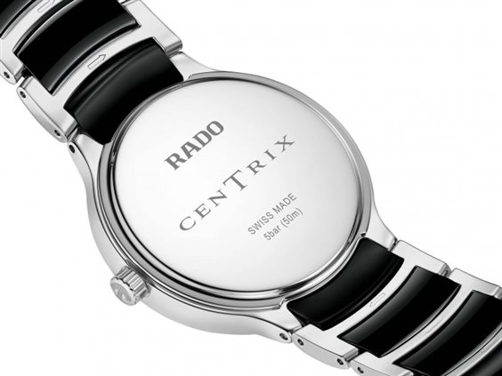Il classico Centrix Quartz Diamonds è stato rielaborato non solo tecnicamente, ma anche esteticamente. Il nuovo modello dispone di un cristallo zaffiro arrotondato che si estende fino al bordo e di una cassa ricurva che si integra con l’estremità del cristallo. Le anse della cassa ridisegnate e il bracciale in acciaio lucido con maglie centrali in ceramica high-tech nera completano l’estetica rinnovata di questo iconico segnatempo. Il quadrante nero laccato, impreziosito da 4 brillanti e sottolineato dal logo “jubilé” stampato, si abbina perfettamente alle lancette color rodio. Grazie al movimento al quarzo calibro R073 dotato di PreciDrive e HeavyDrive, il segnatempo è dotato di grande precisione e resistenza agli urti. L'orologio è impermeabile fino a 50 m.