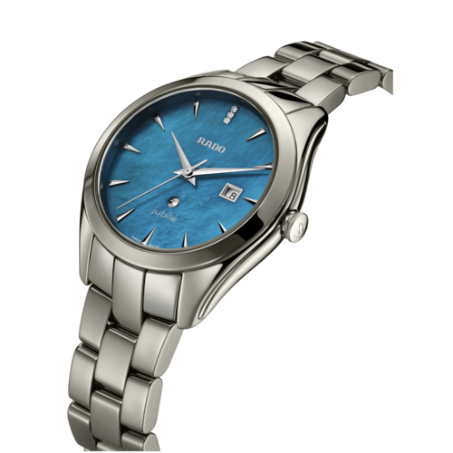Realizzato in edizione rigorosamente limitata a soli 996 esemplari numerati (Ash è nata nel 1996), questo nuovo orologio al quarzo dispone di tre lancette. Il cristallo zaffiro ricurvo, antiriflesso su entrambi i lati, offre una perfetta visione dell’incantevole quadrante in madreperla blu con tre diamanti jubilé al 12, lancette Dauphine rodiate e indici applicati, datario al 3 e una pallina da tennis color rodio in movimento posta nella metà inferiore al 6. Sia la cassa monoblocco che il bracciale a tre file di maglie sono realizzati nella tipica ceramica hi-tech al plasma lucida di Rado. Una speciale incisione sul fondello in titanio riporta la firma di Ash su una pallina da tennis e la scritta LIMITED EDITION con il numero di edizione limitata xxx/996 sulla pallina e il nome ASH BARTY al di sotto. Caratteristiche