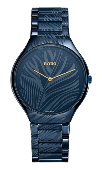 Rado ha realizzato il True Thinline My Bird in splendida ceramica hi-tech blu in collaborazione con la pluripremiata artista e designer russa Evgenia Miro. Con un’incisione laser di precisione raffigurante un delicato motivo a piuma sul bracciale che richiama l’immagine posta in diagonale sul quadrante, questo True Thinline rispecchia l’esclusiva filosofia del tempo di Evgenia.