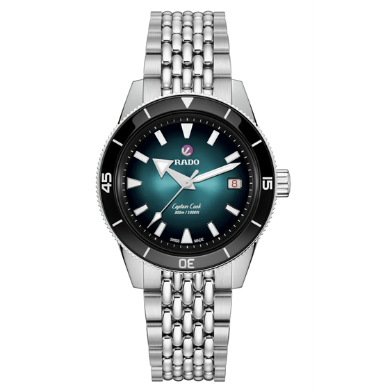 Captain Cook: l’orologio che coniuga eleganza e precisione, per chi pretende il massimo in ogni sfida quotidiana. La cassa da 39 mm in acciaio lucido si fonde armoniosamente con la lunetta girevole coordinata, impreziosita da un inserto in ceramica nera lucida con indici metallizzati argento. Il cristallo zaffiro sagomato, forgiato a temperature superiori a 2.000 °C e trattato con rivestimenti antiriflesso su entrambi i lati, garantisce una nitidezza impeccabile e una durezza seconda solo al diamante. Il movimento automatico R763 assicura affidabilità meccanica e precisione elevate, senza compromessi. Con 25 rubini e una regolazione in cinque posizioni, il movimento offre prestazioni stabili e affidabili in ogni condizione. Il movimento è dotato di spirale antimagnetica Nivachron™. Il movimento R763, cuore pulsante dell'orologio, con una riserva di carica di 80 ore, è progettato per resistere alle sfide quotidiane, garantendo affidabilità e precisione nel tempo. Il quadrante, con delicate sfumature dal nero al turchese, riflette una raffinatezza luminosa e discreta. Gli indici e le lancette color rodio sono rivestiti con Super-LumiNova® bianca, mentre il datario a ore 3 e l'iconica ancora girevole su una piastra posteriore in rubino esaltano la cura per i dettagli. Il bracciale “chicco di riso” in acciaio lucido e satinato, con fibbia a tripla piega, completa il design per offrire una vestibilità perfetta. Impermeabile fino a 30 bar (300 m), il Captain Cook è il partner perfetto per chi cerca l'avventura con stile senza rinunciare alla precisione svizzera