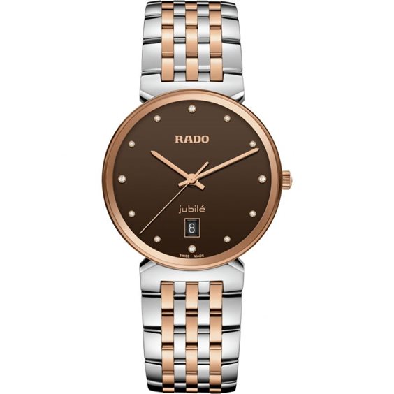 L’armonioso design del Rado Florence Classic rievoca le eleganti cupole e le torri della città da cui la collezione prende il nome. L'orologio, del diametro di 38 mm, dispone di un cristallo zaffiro ricurvo arrotondato edge-to-edge. Il bracciale, realizzato in acciaio lucido con maglie centrali color oro rosa, definisce l’estetica di questo classico segnatempo. Il quadrante marrone soleil, arricchito da 12 brillanti e impreziosito dal logo “jubilé” stampato, si abbina alla perfezione alle lancette color oro rosa. Grazie al movimento al quarzo calibro R073 a tre lancette, il segnatempo è dotato della massima precisione e resistenza agli urti. L'orologio è impermeabile fino a 50 m ed è disponibile anche nella taglia S, il che lo rende l’esemplare ideale per le coppie.