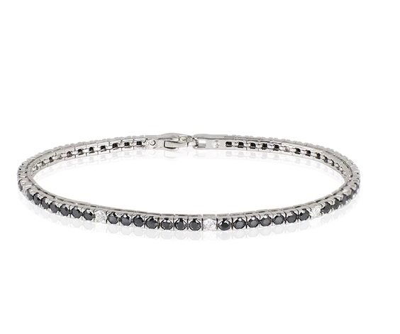 Tennis in argento e spinelli nero con qualche zircone bianco. Pietre da 3 mm