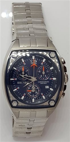 OROLOGIO SECTOR UOMO CON CASSA E CINTURINO IN ACCIAIO. QUADRANTE BLU CON SFERINE ARANCIONI. AL QUARZO, ANALOGICO, CRONOGRAFO. IMPERMEABILITA' 100 METRI.