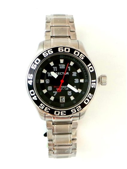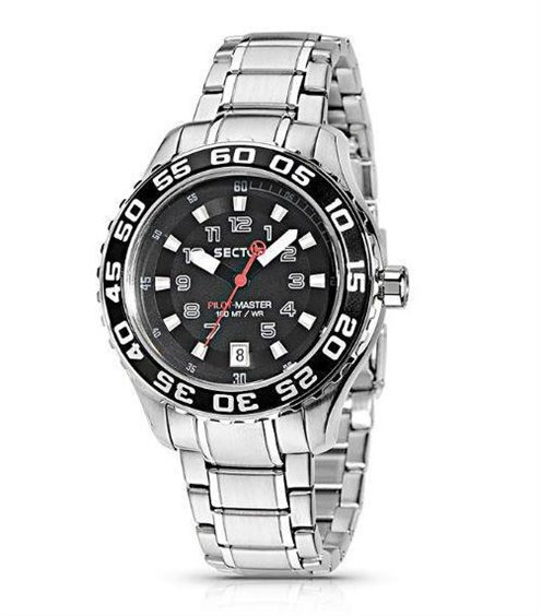 Orologio collezione PILOT MASTER acciaio con datario, movimento al quarzo, vetro minerale , quadrante nero di diametro mm 41 ghiera di colore nero unidirezionale , cinturino in acciaio lucido e satinato con chiusura a deployante, resistente all'acqua fino a 100 m, fondello serrato a vite. garanzia due anni