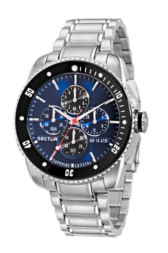 Orologio uomo in acciaio 316L , movimento cronografo al quarzo VD56 , cassa mm 45 , quadrante blu , lunetta ghiera nera , ghiera girevole unidirezionale , vetro zaffiro , fondello a vite , corona a vite , cinturino in acciaio lucido e satinato , chiusura deployante a bottoni con sicurezza. L'immagine è indicativa , la confezione può variare di forma e colore.