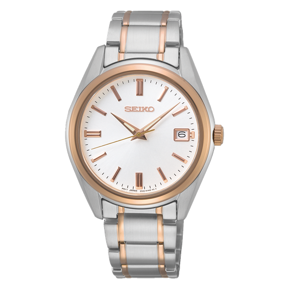 Questo modello interamente in acciaio inossidabile esibisce tocchi di color oro rosa sulla lunetta, la corona e il bracciale. Il diametro di 36 mm lo rende ideale per gli uomini e le donne alla ricerca di un raffinato orologio classico. Gli indici e le lancette, anch'essi di color oro rosa e luminescenti, completano magnificamente l'eleganza del quadrante bianco.