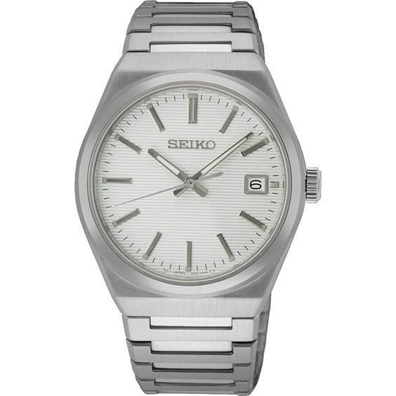 Ispirato al modello del 1970, con il famoso bracciale integrato nella cassa, questo orologio, già disponibile in versione maschile, viene ora proposto in un diametro più contenuto di 34 mm per adattarsi con grazia ai polsi delle signore. Presenta funzioni a 3 lancette e datario a finestrella a ore 3. La versione SUR573P1 presenta uno splendido quadrante bianco con striature orizzontali.