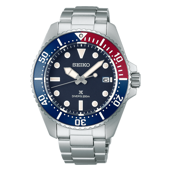Il Prospex Solar Diver SNE595P1 ha una cassa di 41 mm di diametro e un bracciale in acciaio. Il suo quadrante blu scuro è impreziosito da una lunetta girevole unidirezionale in alluminio di colore blu e rosso per una maggiore visibilità. Impermeabile fino a 200 metri, questo Prospex non è solo pratico e accattivante, ma è anche alimentato da un movimento al quarzo a energia solare.