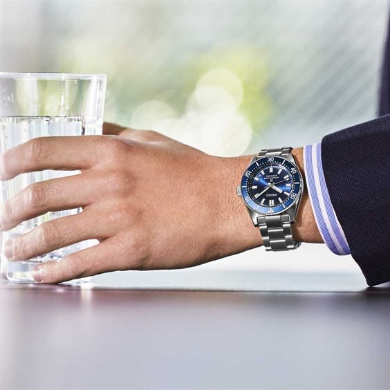 La collezione Prospex di Seiko è dedicata alla creazione di orologi sportivi, precisi e affidabili. L'orologio automatico Prospex SPB451J1 è realizzato interamente in acciaio inossidabile con rivestimento antigraffio. Impermeabile fino a 300 metri, è la perfetta rappresentazione dell'esperienza di Seiko negli orologi subacquei. L'accattivante quadrante blu, con lancette e indici rivestiti in Lumibrite, è coperto da un vetro zaffiro bombato con trattamento antiriflesso e circondato da una lunetta girevole unidirezionale blu.