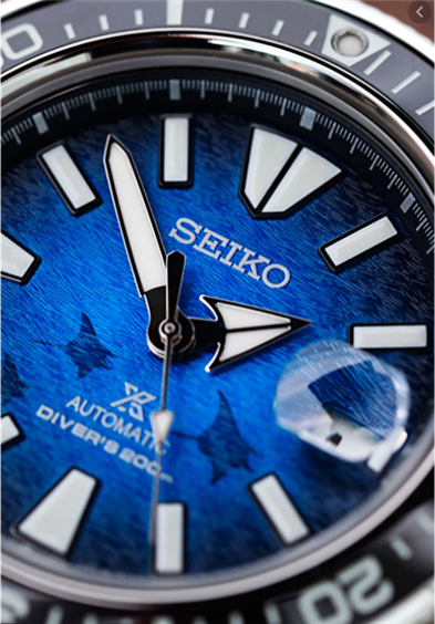 L’orologio PROSPEX SRPE33K1 è un’edizione speciale “Save The Ocean” ispirato alla manta. Il quadrante blu marino, dai grandi indici in Lumibrite, consente una lettura ottimale dell’ora durante le tue esplorazioni subacquee. Questo modello è concepito per resistere alle condizioni estreme degli sport acquatici, con una resistenza all'acqua fino a 200 metri.