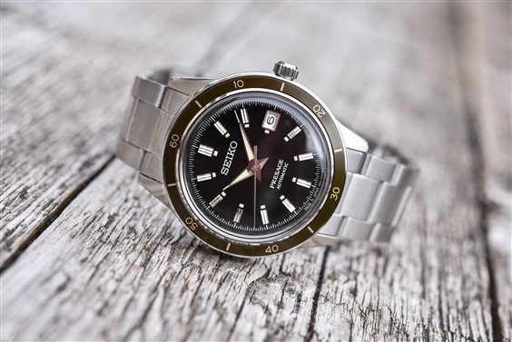 Presage 1960 style Automatico La nuova collezione Presage Style 60's riprende le caratteristiche del Crown Chronograph: vetro zaffiro a scatoletta, indici sfaccettati e lancette dalla forma acuta. Un design che rimanda alla sensazione di leggerezza tipica dei segnatempo dal look vintage anni Sessanta. Le diverse tecniche di finitura applicate al rehaut e alla parte del quadrante dove sono poste le lancette, conferiscono una migliore leggibilità e una calda atmosfera vintage naturale, con diverse sfaccettature in base alla prospettiva da cui viene ammirato il segnatempo. L'orologio SRPG07J1 ha una cassa delicatamente arrotondata e leggermente inclinata verso l’interno per garantire una sensazione di migliore confort al polso.