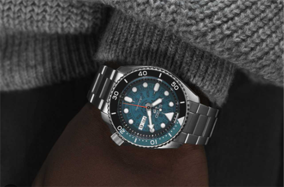 Scoprite il nuovo orologio SeikoSRPJ45K1 in edizione speciale, un omaggio agli archivi Seiko degli anni '70: "Time Sonar". Questo orologio dallo stile grafico è interamente frutto del know-how della manifattura Seiko, dal calibro automatico alle minuziose finiture. Il quadrante blu trasparente presenta un'indicazione del giorno/della data a ore 3 e il logo della collezione Seiko 5 a ore 12.