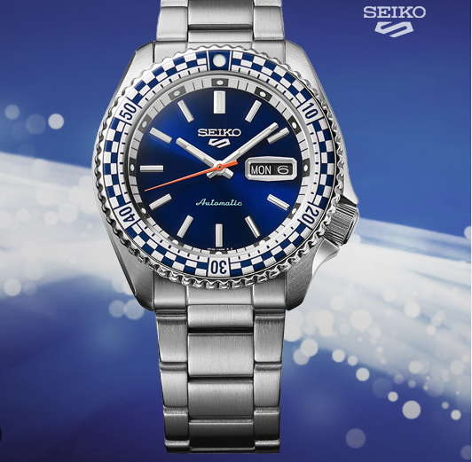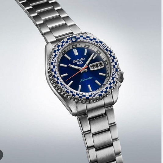 Edizione Speciale con scritta riportata sul fondello. design "checker flag" bandiera a scacchi. movimento a ricarica automatica seiko 4R36 robusto ed affidabile. doppio datario giorno e data corona di ricarica a ore 4 W.R 100metri corona a pressione con guarnizione protettiva impermeabilità. fondello a vite con oblò vista movimento