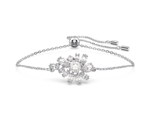 Arricchisci ogni outfit con questo delicato bracciale floreale della linea Gema. Sfavillante grazie al suo mix di pietre trasparenti trattenute da raffinate montature a griffe, con la sua catena placcata rodio dotata di chiusura regolabile si adatta perfettamente al polso. Indossalo da solo oppure sovrapposto ad altre creazioni di questa irresistibile collezione.