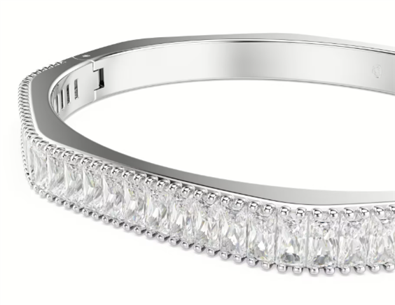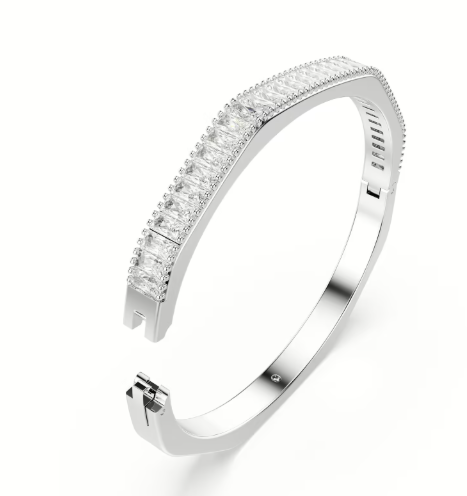 Bracciale da donna di Swarovski della collezione matrix. Bracciale Placcato rodio con cristalli Swarovski taglio baguette. Lunghezza: 18.3 cm. Ampiezza: 0.6 cm. Diametri interni: 6.2 x 5.4 cm. Distanza apertura: 4 cm. Colorazione del cristallo bianco. Chiusura clip. La referenza è 5720621