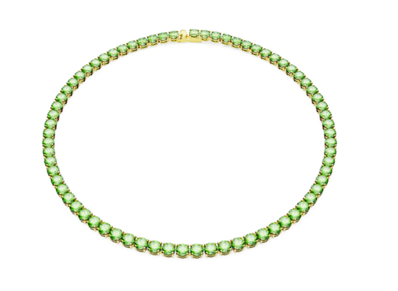 Questa radiosa collana Matrix Tennis è animata da una vivace fila di pietre verdi rotonde incastonate in una placcatura in tono dorato. L’elegante uniformità e la raffinata chiusura contribuiscono a creare una fluidità quasi infinita. Questo gioiello è facile da abbinare e diventerà di certo uno dei tuoi preferiti. Articolo nr.: 5661189 Collezione: Matrix Tennis Colore: Verde Lunghezza minima: 41 cm Lunghezza massima: 41 cm Larghezza: 0.5 cm Materiale: Placcato color oro, Zirconia Tipo di fermaglio: Chiusura a incastro con fermaglio di sicurezza
