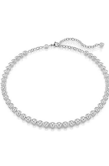 Realizzata con un mix senza tempo di tonalità soffuse, questa collana Imber Tennis è la scelta ideale per il tuo styling di tutti i giorni. Il design placcato rodio presenta uno strand all-around di cristalli taglio Round in una tondeggiante montatura a castone. Un’ottima scelta per aggiungere un tocco di radiosità in più al tuo look.