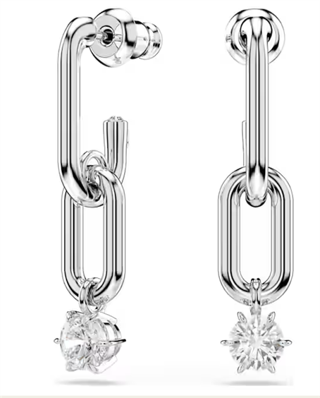 Questi giocosi orecchini sono la scelta perfetta per uno stile inaspettato. Ciascun orecchino presenta due elementi collegati tra loro con placcatura rodio e una Swarovski Zirconia montata a griffe che pende delicatamente al di sotto. Un look metallizzato ed elegante per ogni occasione, con un’ulteriore esplosione di luce Swarovski. Articolo nr.: 5728584 Collezione: Constella Dimensione: 3.2 x 0.7 cm Materiale: Cristalli, Placcatura rodio, Zirconia Colore: Bianco Peso (singolo oggetto): 1.71 g