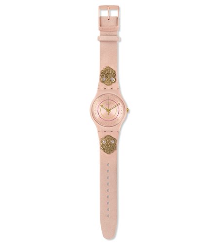 I delicati toni rosati di EMBROIDERY (SUOP108) sono la perfetta aggiunta a qualsiasi collezione Swatch. Il quadrante spazzolato rosa del modello è decorato da Swatch Sparkles dorati e indici rosa e oro, ed è alloggiato in una cassa in plastica satinata rosa. Il design prosegue in dolcezza con un cinturino in Alcantara rosa con passante coordinato e fibbia in plastica satinata rosa.