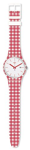 La perfezione del picnic, il modello a quadretti PIKNIK (SUOW401) ha un cinturino in silicone bianco con strisce rosse e rosa chiaro sovrapposte. Il motivo classico del picnic viene ripreso anche sulla cassa in plastica.