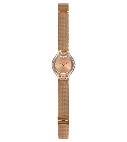 L’elegante SKINELLI (SVUK102M) brilla grazie ai cristalli trasparenti che ne decorano il quadrante color oro rosa. Anche il sottile bracciale regolabile in maglia milanese è realizzato in color oro rosa.
