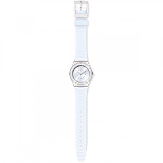 Questo orologio Swatch ha una cassa in acciaio inox con un diametro di 33 mm ed è dotato di un cinturino in Gomma. All'interno ha un movimento per orologi di qualità ed è finito con un vetro di tipo plexiglass. L'orologio è impermeabile a 3ATM. Ciò significa che l'orologio è impermeabile ai spruzzi.