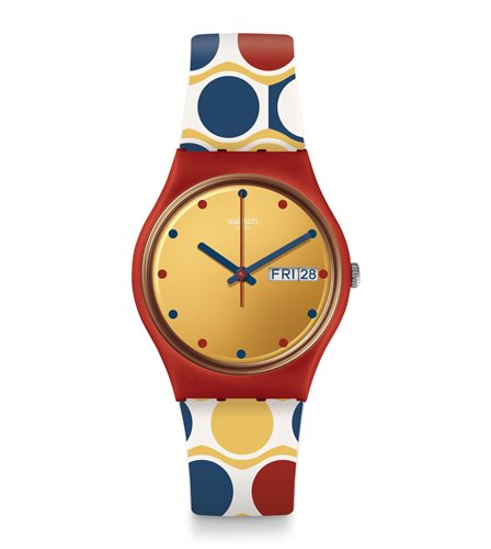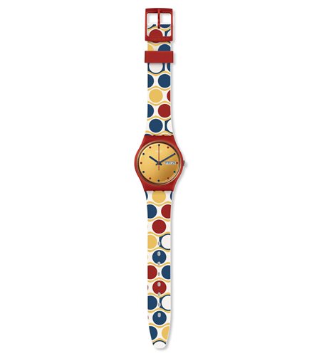 PASTILLO (GR708) riempie la tua giornata di allegri pois. Il suo quadrante specchiato dorato con indici multicolori e datario a ore 3 è alloggiato in una cassa in plastica satinata rossa. L’appariscente cinturino con pois è realizzato in silicone opaco bianco con stampa multicolore, passante in silicone rosso e fibbia in plastica satinata rossa.