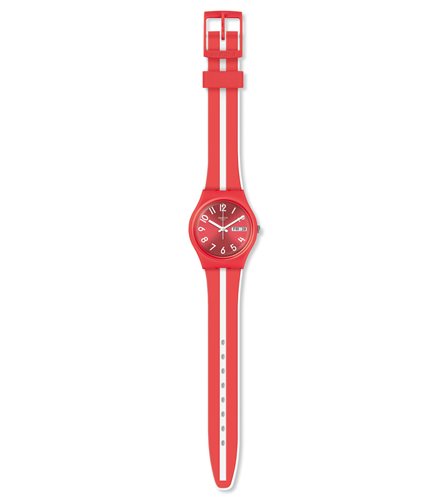 Carico di vitamina C ed energico come il suo design super trendy, SANGUINELLO (GR709) ha il quadrante rosso spazzolato e il cinturino a righe verticali rosse e bianche.