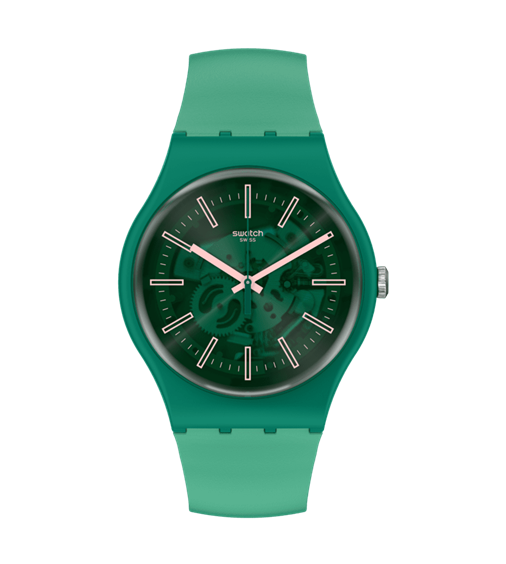 Il fiore all'occhiello di questo orologio New Gent BIOSOURCED è il quadrante chiaro spazzolato con una stampa verde e rosa e un vetro di origine biologica. Le decise sfumature verde opaco della cassa in plastica di origine biologica, il cinturino, il passante e la fibbia rappresentano lo sfondo ideale per questo modello sofisticato.