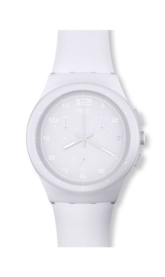 Marchio SWATCH dal 1983 leader mondiale della categoria. Orologio della linea Chronoplastic con cassa in plastica, cinturino in silicone bianco e funzione cronografica. Resistente all' acqua, agli urti, precisione al quarzo. SWISS MADE. Scatola originale e due anni di garanzia ufficiale SWATCH.