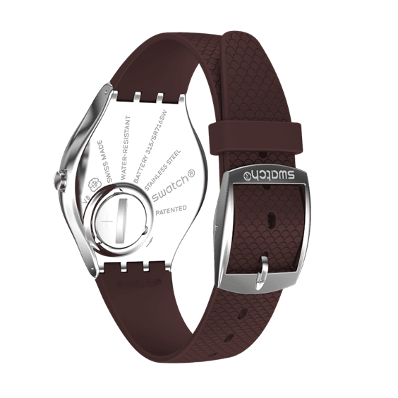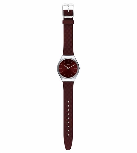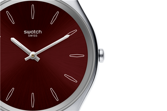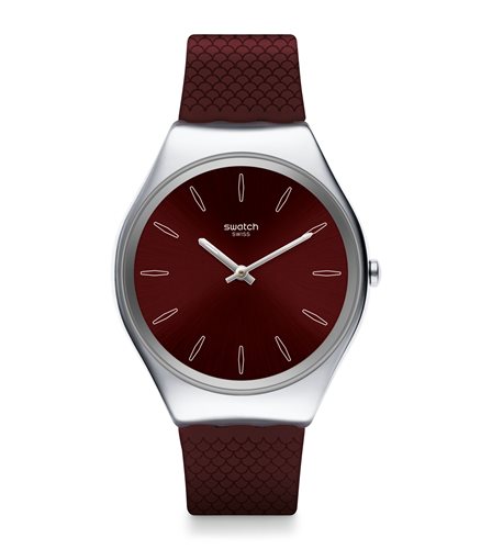 L’irresistibile SKINBURGUNDY (SYXS120) ha il cinturino opaco a rilievo e il quadrante spazzolato in rosso bordeaux, a contrasto con la cassa ultrasottile realizzata in acciaio inossidabile lucido.